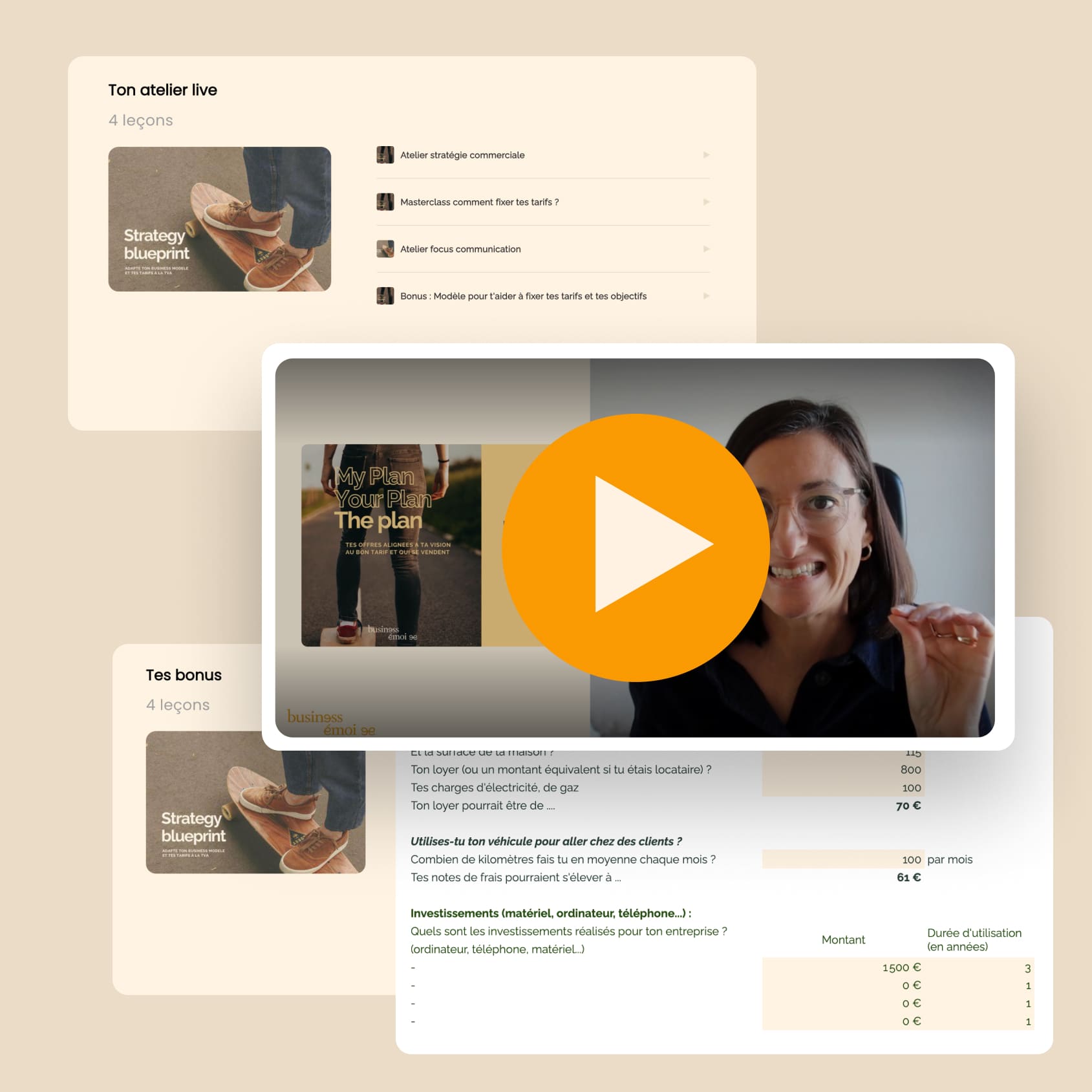 Avec Strategy Blueprint, tu poses enfin ta vision, tu structures tes offres et tu fixes tes tarifs avec confiance pour bâtir une stratégie claire et durable.